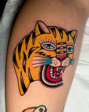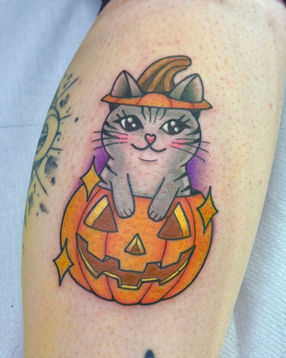 Jamie began her career pre-pandemic in 2019, and apprenticed around her usual 9-5 in a number of studios. She joined Silver Needles in mid 2025, where she creates bold, colourful, and traditional inspired tattoos.